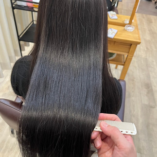 4. 必要に応じて弱酸性ストレートで毛流れも整え、ダメージを最小限に
